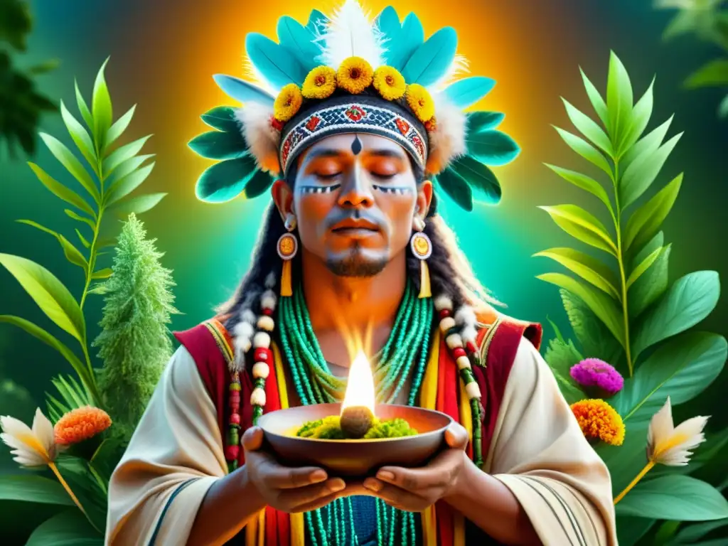 Un chamán vikingo en trance mágico, rodeado de runas luminosas